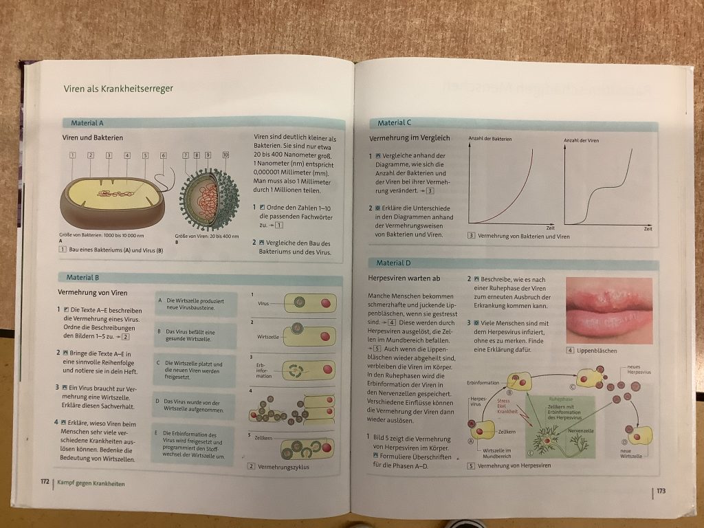 - Biologie: S. 172 Material A Nr. 1,2, Material B Nr. 1, 2, 3, , S. 173 Material C Nr. 1, Material D Nr. 1, 3